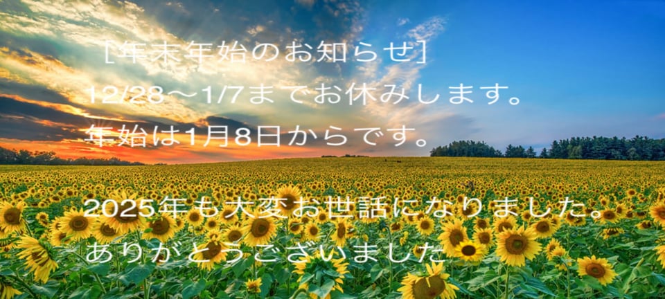 今年もお世話になりました!ありがとうございました!!!2026年は1月8日〜スタートです。