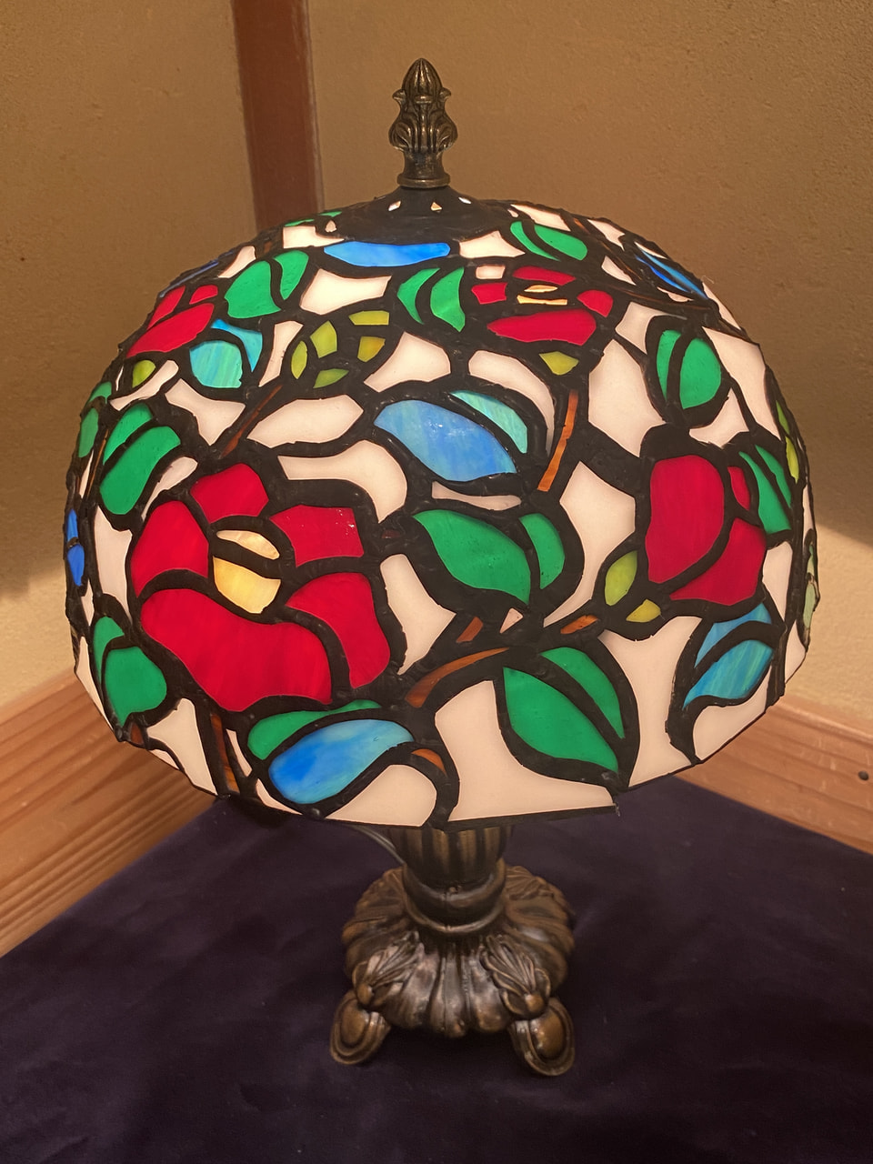 中野美咲さん作 ステンドグラス 椿のランプシェード